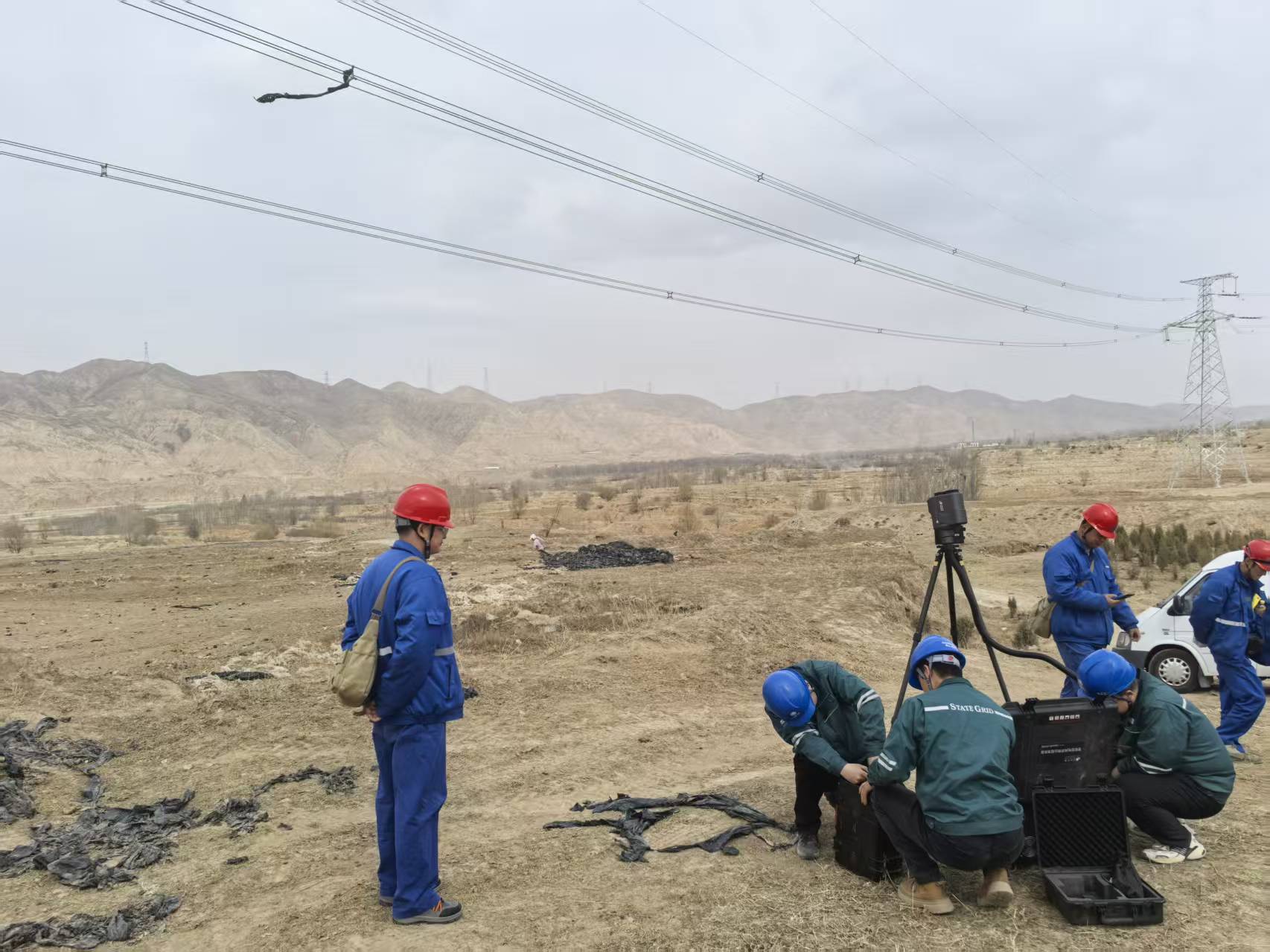 當(dāng)日,國(guó)網(wǎng)海東供電公司客戶服務(wù)中心員工前往海東紅獅半導(dǎo)體有限公司開展走訪服務(wù),行至企業(yè)附近時(shí),發(fā)現(xiàn)客戶的供電線路330千伏郭瑞一回55—56號(hào)鐵塔段導(dǎo)線上搭掛著一片塑料地膜。受風(fēng)力影響,地膜緊緊纏繞在導(dǎo)線上,若不及時(shí)清理,遇惡劣天氣極易引發(fā)線路短路或接地故障,不僅可能導(dǎo)致企業(yè)停產(chǎn)停電,更對(duì)周邊人員安全構(gòu)成威脅,用電風(fēng)險(xiǎn)較為突出。
