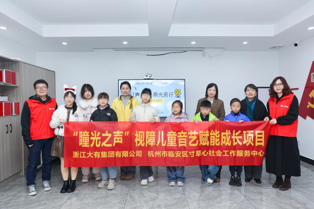 2026年以來,大有集團公司與杭州市臨安區(qū)寸草心社會工作服務中心結對聯(lián)建,根植社會公益,共同開展“瞳光之聲”視障兒童音藝賦能成長項目。本次活動為該項目的重要一環(huán),致力于通過聲音藝術賦能視障兒童,幫助其提升自信、發(fā)展特長、融入社會。聲音不僅是他們感知世界的重要窗口,更是他們表達自我、實現(xiàn)價值的獨特媒介。此次活動既是對階段性成果的集中展示,也通過專業(yè)師資的精準指導,進一步激發(fā)孩子們的藝術潛能,傳遞“聲音無界,夢想有光”的溫暖理念。