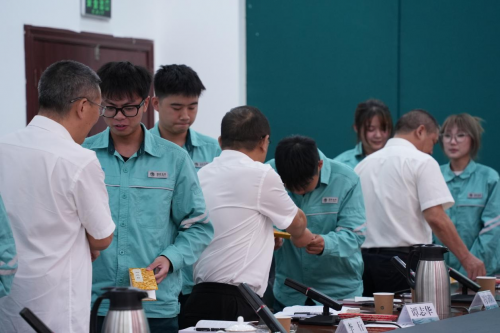 會(huì)議的高潮,在傳統(tǒng)意蘊(yùn)與時(shí)代氣息的交融中愈發(fā)醇厚。備受期待的職業(yè)導(dǎo)師拜師儀式于此刻莊重啟幕:新員工們面向?qū)熒钌罟恚詡鞒兄Y奉上那封承載著求知熱忱的“拜師帖”,紙頁間滿是對(duì)成長(zhǎng)的渴望;導(dǎo)師們鄭重回贈(zèng)“回徒帖”,接過的不僅是一份承諾,更是“傳道、授業(yè)、解惑”的千鈞責(zé)任。導(dǎo)師代表杜斌、譚志華字字鏗鏘地承諾:“定當(dāng)傾囊相授、教學(xué)相長(zhǎng),悉心澆灌新苗成長(zhǎng)為棟梁之材,與大家攜手共繪石電發(fā)展新畫卷?!?/p>