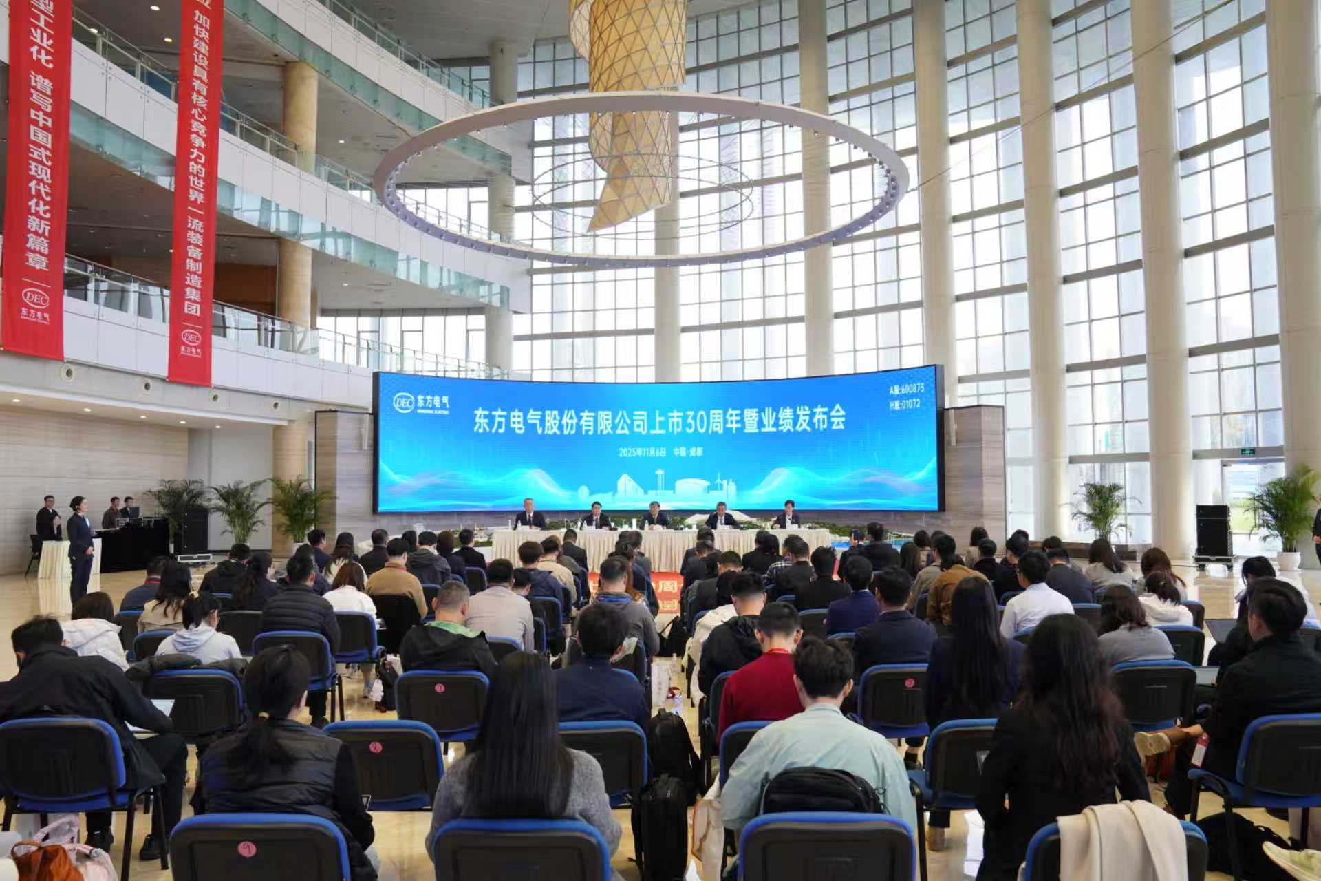 中國(guó)能源新聞網(wǎng)訊(田穎聰 諶鈺婷)11月6日,東方電氣股份有限公司(簡(jiǎn)稱“東方電氣”)上市30周年暨業(yè)績(jī)發(fā)布會(huì)在成都舉辦。東方電氣集團(tuán)黨組書記、董事長(zhǎng),股份公司董事長(zhǎng)羅乾宜出席會(huì)議并致辭。集團(tuán)公司黨組成員、副總經(jīng)理,股份公司董事、高級(jí)副總裁孫國(guó)君;集團(tuán)公司黨組成員、副總經(jīng)理,股份公司高級(jí)副總裁李建華;集團(tuán)公司黨組成員、總會(huì)計(jì)師,股份公司總會(huì)計(jì)師呂雙出席會(huì)議。集團(tuán)公司董事會(huì)秘書、總審計(jì)師,股份公司董事會(huì)秘書馮勇主持活動(dòng)。來自中信證券、中金公司、花旗銀行、匯豐銀行、瑞銀證券、博時(shí)基金、易方達(dá)基金等機(jī)構(gòu)嘉賓及媒體記者共90余人參加活動(dòng)。