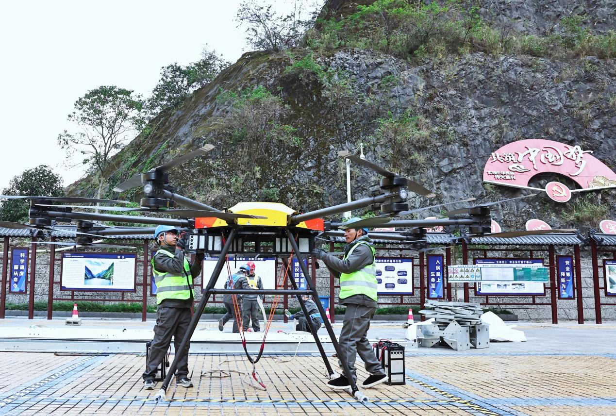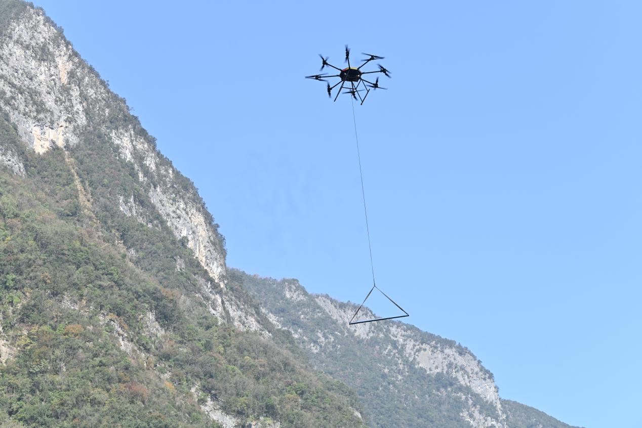 重慶首次運用大載重?zé)o人機助力鐵塔組立