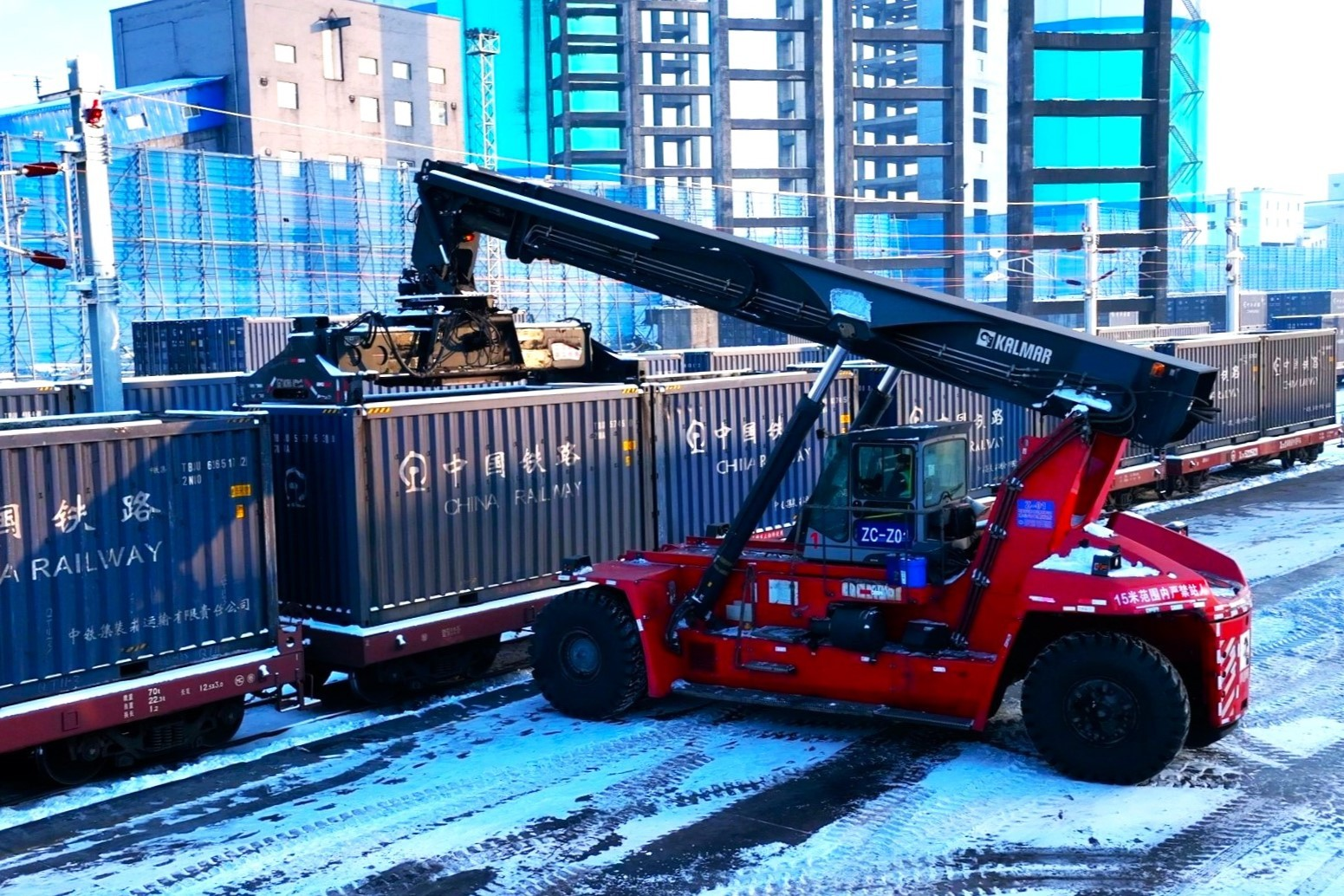 圖為新疆能源火車集裝箱快線裝車現(xiàn)場
