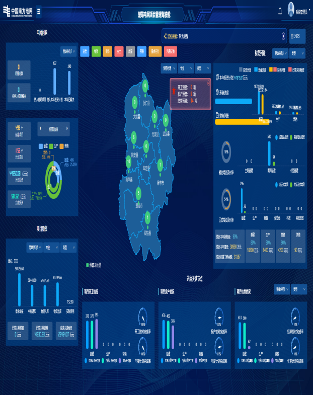 以數馭效,精準致遠。“項目管理駕駛艙”實現一屏總覽、一鍵穿透,管理人員在辦公室就能實時掌握每個項目的投資進度、施工進展、財務列賬、資金支付和資產轉固情況,精準定位并監(jiān)督解決問題。該局勵精圖治,不斷完善,希望在項目管理領域為南方電網提供減負樣板,切實為項目管理、結算減負增效。
