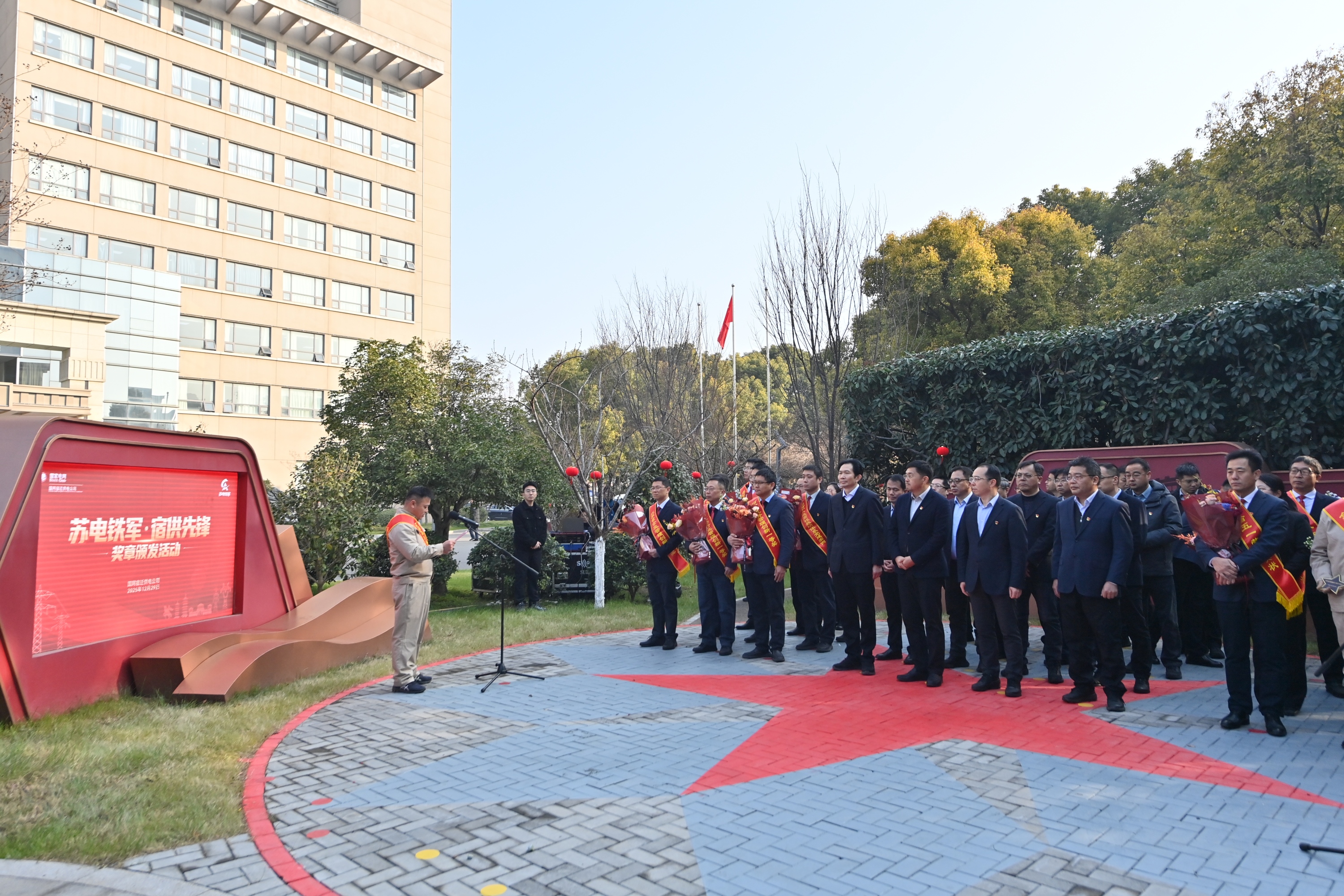 活動現(xiàn)場,視頻展示了該公司自2025年三季度以來獲上級榮譽表彰情況,以及全國志愿服務“四個100”獲獎集體“一鍵通”黨員服務隊的先進事跡。該公司領導班子成員依次為獲獎的個人、集體及項目類榮譽代表獻花致意。宿遷供電公司黨政負責人向“一鍵通”黨員服務隊代表頒發(fā)“先鋒獎章”,并舉行了隆重的“先鋒獎章”懸掛“先鋒塔”儀式?!耙绘I通”黨員服務隊隊長張紹峰作表態(tài)發(fā)言。