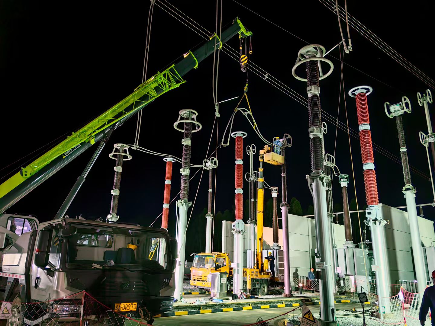 廣西電網(wǎng)南寧供電局變電管理一所工作人員對500千伏邕州變電站新更換的電容式電壓互感器進(jìn)行驗(yàn)收。黃永爍 攝