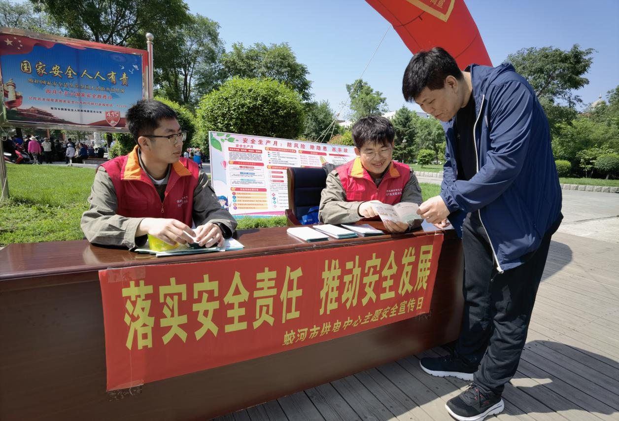蛟河市供電中心高度重視本次活動,組織生產(chǎn)黨支部黨員服務(wù)隊與蛟河市政府相關(guān)部門在人流量較大的人民廣場開展安全生產(chǎn)月宣傳活動,通過張貼《電力安全宣傳海報》、發(fā)放《用電安全宣傳手冊》以及印有安全用電和電力設(shè)施保護知識的撲克牌、環(huán)保購物袋等,現(xiàn)場普及講解日常安全用電常識,切實提高居民用電安全和電力設(shè)施保護意識。