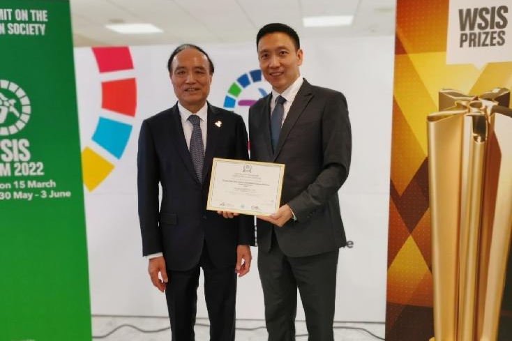 國際電信聯(lián)盟秘書長趙厚麟為華為頒發(fā)WSIS2022冠軍獎證書