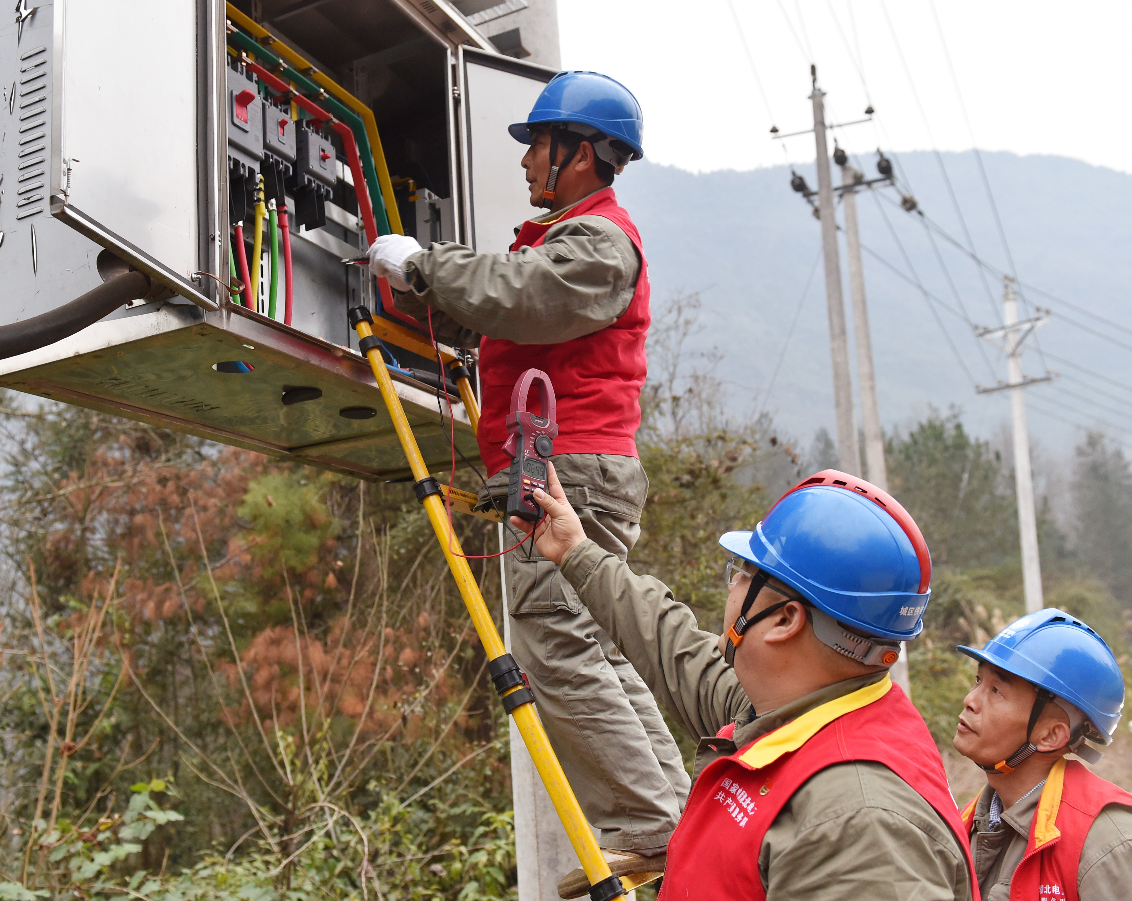 1月21日,國網(wǎng)湖北電力恩施供電公司城區(qū)供電中心配搶員工測量臺變電壓楊志英攝