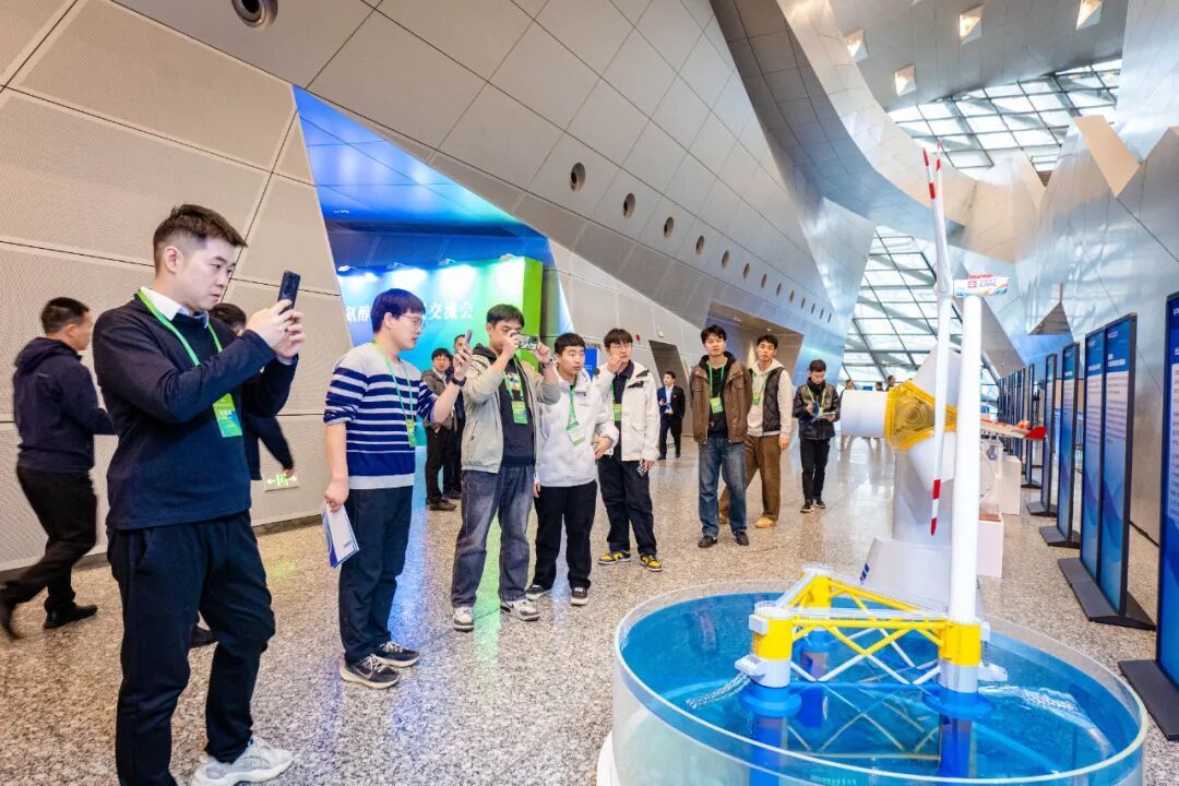 ▲ 2025海上風(fēng)電現(xiàn)代產(chǎn)業(yè)鏈共鏈行動(dòng)大會(huì)期間,與會(huì)人員在會(huì)場(chǎng)外的展臺(tái)前駐足參觀,大會(huì)展出的28件展品均代表了我國(guó)新能源產(chǎn)業(yè)領(lǐng)域最新技術(shù)成果。