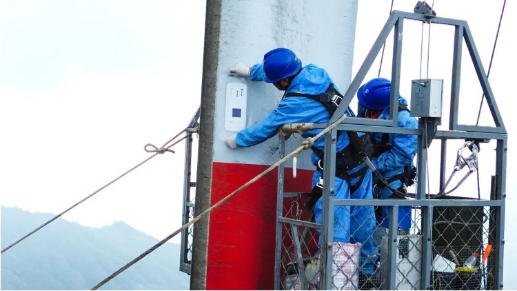 ▲ 運維人員正在為葉片貼上“電子皮膚”