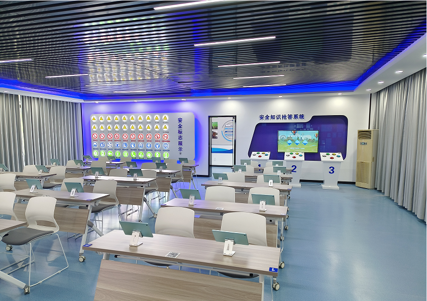 公司建設(shè)了將安全風(fēng)險(xiǎn)體驗(yàn)系統(tǒng)、安全技能實(shí)操系統(tǒng)、應(yīng)急救援系統(tǒng)、VR仿真智慧互動(dòng)系統(tǒng)等先進(jìn)高科技手段融為一體的安全綜合教育培訓(xùn)中心,有基建安全風(fēng)險(xiǎn)體驗(yàn)區(qū)、安全生產(chǎn)技能實(shí)操區(qū)、應(yīng)急救援技能實(shí)操區(qū)、虛擬仿真交互演練區(qū)、多人應(yīng)急救援演練區(qū)、綜合考核培訓(xùn)管理區(qū)等六大區(qū)域,實(shí)現(xiàn)了有人培訓(xùn)及無(wú)人自主培訓(xùn),采用虛擬現(xiàn)實(shí)(VR)或增強(qiáng)現(xiàn)實(shí)(AR)技術(shù),模擬水電站的各種情景和應(yīng)急情況,讓員工通過(guò)互動(dòng)式體驗(yàn)進(jìn)行學(xué)習(xí)和訓(xùn)練,并記錄學(xué)習(xí)過(guò)程中的關(guān)鍵指標(biāo)和數(shù)據(jù)。這個(gè)平臺(tái)可以是一個(gè)集成的在線學(xué)習(xí)系統(tǒng),包括以下功能:
