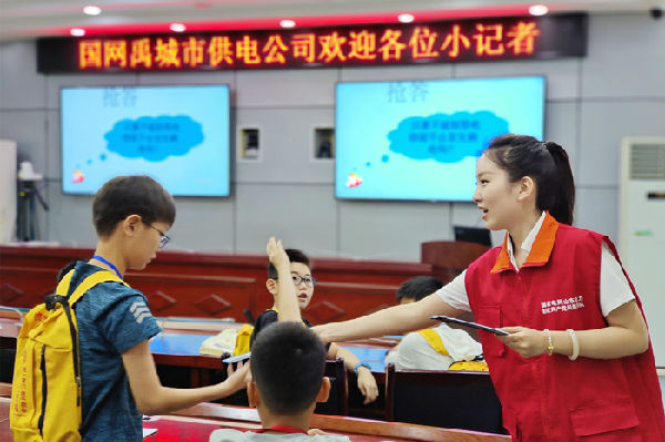“電是從哪里來的,又是怎么運輸?shù)??”“如何才能安全用電?”…?月15日、16日,400余名德州晚報小記者分批走進禹城公司,零距離感受“電文化、電安全”,了解清潔能源知識、感受供電服務(wù)魅力,開啟了一場電網(wǎng)探秘之旅。
