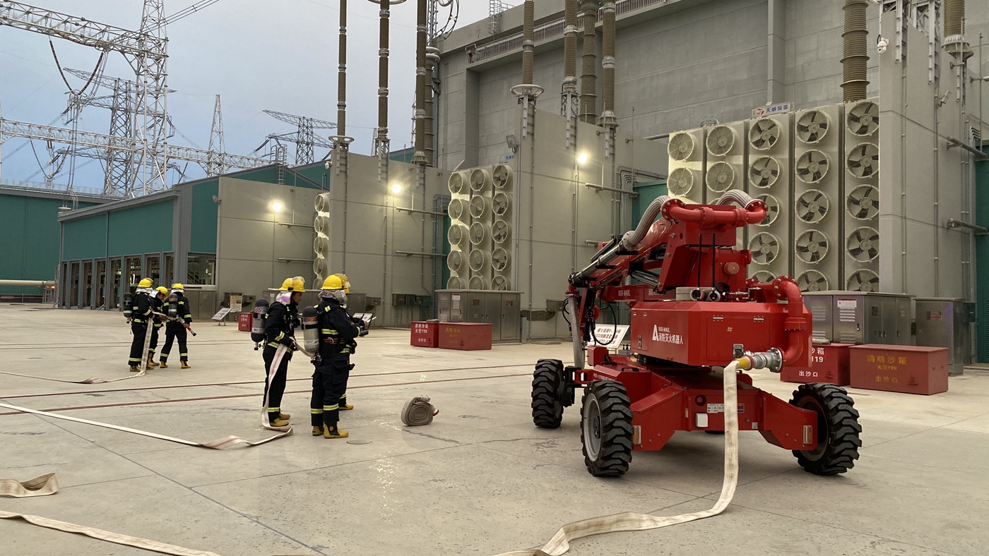 6月12日,±800千伏特高壓青南換流站開展極II低端Y-D B換流變壓器突發(fā)火災(zāi)應(yīng)急演練。(蘆金龍 攝)
