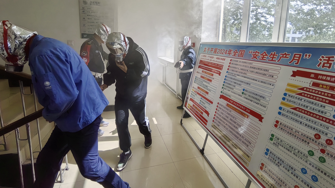 6月19日,海北門源縣公司組織開展消防疏散演練。(汪世棟 攝)