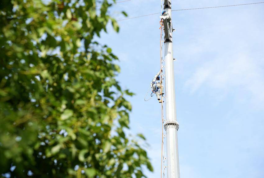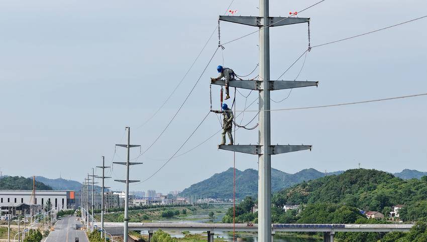 6月4日,在湖北省孝感市大悟縣35千伏陽芳線整線檢修現(xiàn)場,孝感供電公司120名作業(yè)人員在16公里長的供電線路上多點分區(qū)施工、多專業(yè)聯(lián)合作業(yè),更換絕緣子、安裝避雷器和驅(qū)鳥器及防震錘,搶在水稻澆灌和夏季高負(fù)荷用電之前,對35千伏陽芳線整線檢修,提升線路的供電可靠性,保障陽平工業(yè)園十多家企業(yè)和芳畈鎮(zhèn)居民生產(chǎn)生活用電無憂。