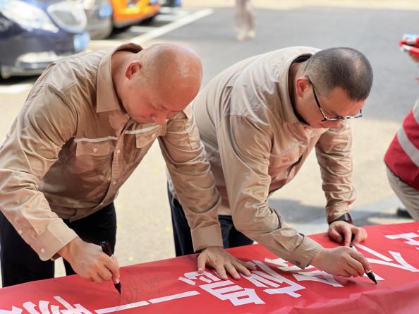 簽署安全承諾橫幅,筑牢安全生命防線。福建億力集團(tuán)所屬榕能集團(tuán)億力輸變電分公司安全第一負(fù)責(zé)人率先在“安全生產(chǎn)月”主題橫幅上簽字。隨后,各員工紛紛上前簽字,并表達(dá)了對安全生產(chǎn)工作的堅定支持和自身的安全承諾。大家紛紛表示,將以高度的責(zé)任感和使命感,嚴(yán)格執(zhí)行安全操作規(guī)程,使安全理念轉(zhuǎn)化為行動自覺,使安全技能得到有效提升,充分發(fā)揮安全文化的引領(lǐng)、凝聚、輻射作用,為家庭幸福和社會和諧提供保障。(林樹婷)