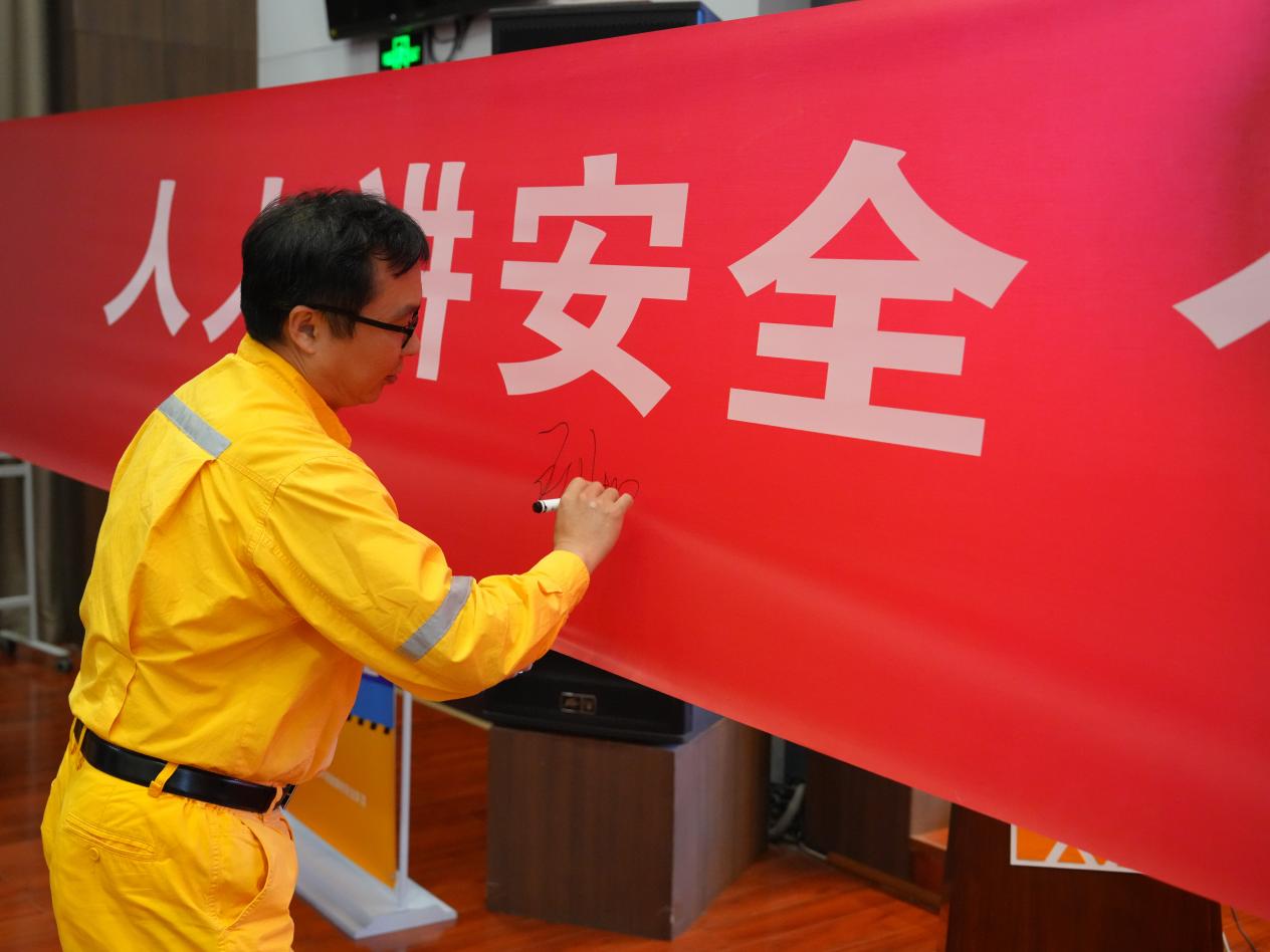 首先,參會員工集體觀看安全生產(chǎn)月警示教育片。然后由公司副總經(jīng)理、EHS總監(jiān)王國坤傳達宣貫國務(wù)院國資委新頒布的安全生產(chǎn)監(jiān)督、考核和評價三項制度,安排部署安全生產(chǎn)月系列活動和安全大檢查工作。接著是公司總經(jīng)理張國防開展安全授課,帶頭重溫習近平總書記關(guān)于安全生產(chǎn)的重要論述,著力強調(diào)發(fā)展決不能以犧牲人的生命為代價的紅線意識,重點闡述安全發(fā)展戰(zhàn)略、責任體系、責任落實、改革創(chuàng)新、長效機制、勇于擔當?shù)劝踩撌鲆c。會議還安排“安全主題宣誓”和“安全生產(chǎn)月主題簽名”活動。
