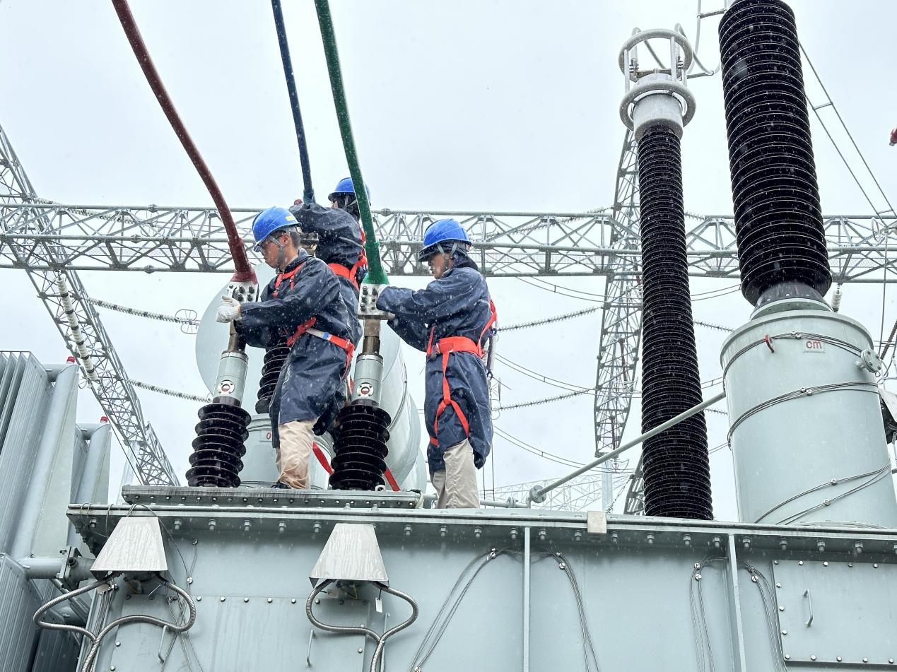 6月1日,位于泉州南安的500千伏變電站——洋荷變迎來4號(hào)主變首檢工作。然而天公不作美,受臺(tái)風(fēng)“馬力斯”和冷空氣共同影響,檢修期間整日陰雨連綿,以戶外工作為主的主變首檢受到了嚴(yán)峻挑戰(zhàn)。為了不影響工期,電力鐵軍們不懼風(fēng)雨、緊鑼密鼓、頑強(qiáng)拼搏,紛紛披上雨衣冒雨作業(yè),他們?cè)诂F(xiàn)場(chǎng)忙碌的身影,是比雨后彩虹更美的風(fēng)景線。
