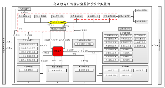 烏江智能安全監(jiān)管系統(tǒng)以烏江渡電廠安全管理規(guī)章制度為基礎(chǔ),以風(fēng)險(xiǎn)管控為主線,圍繞發(fā)電生產(chǎn)實(shí)現(xiàn)風(fēng)險(xiǎn)全面閉環(huán)、流程化管理,引入智能安全監(jiān)管技術(shù),應(yīng)用到風(fēng)險(xiǎn)管控各環(huán)節(jié),實(shí)現(xiàn)安全風(fēng)險(xiǎn)智能管控和自動(dòng)預(yù)警,匯總各類安全監(jiān)管事項(xiàng)建立安全檔案臺(tái)賬。