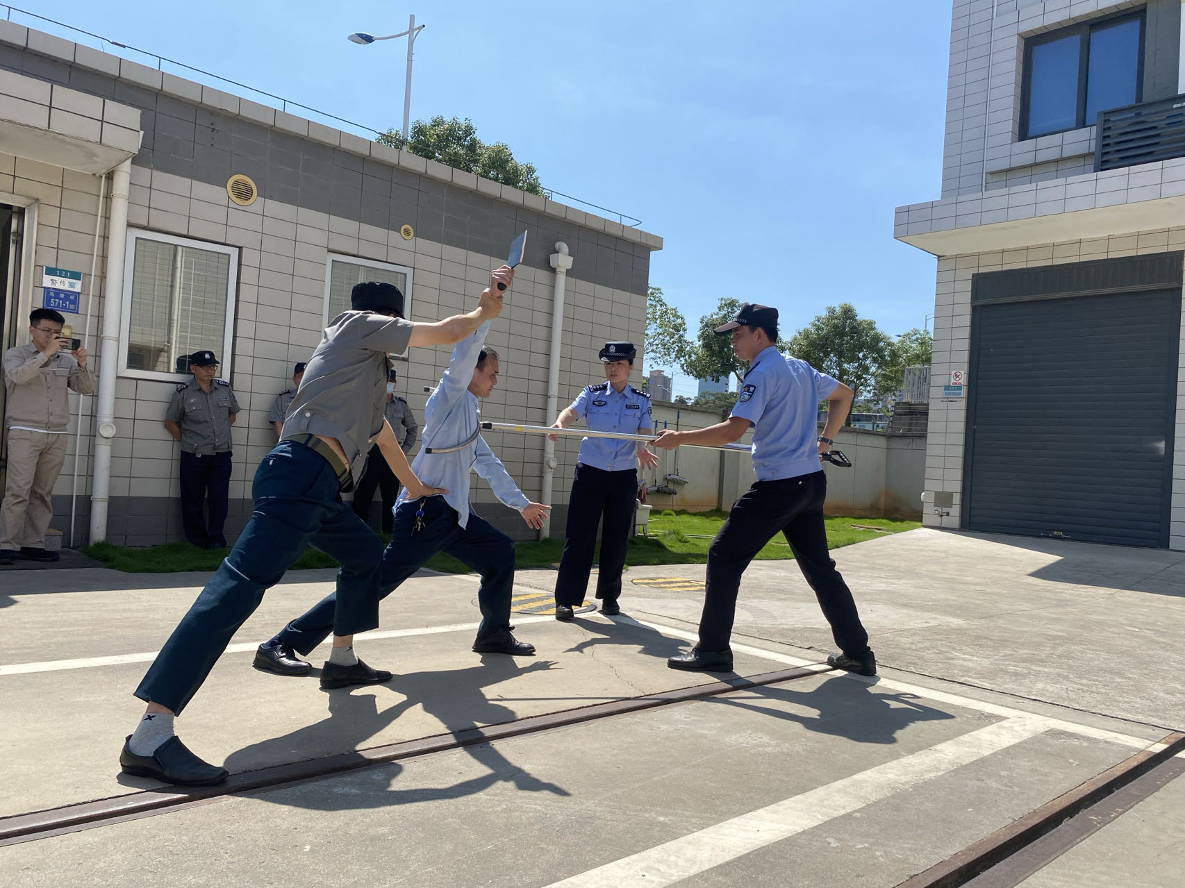 鷺島換流站模擬一起“恐怖分子”持刀滋事,未經(jīng)許可試圖闖入控制樓,對(duì)換流站的安全運(yùn)行構(gòu)成威脅的突發(fā)事件。面對(duì)這一緊急情況,換流站保安人員大聲呼叫,立即按下110聯(lián)動(dòng)報(bào)警按鈕,并撥打主控室電話告知情況,隨后迅速拿起防爆盾牌和防爆鋼叉投入戰(zhàn)斗。運(yùn)維值班人接到通知后,將“恐怖分子”信息通過廣播告知現(xiàn)場(chǎng)人員并進(jìn)行疏散。安保人員憑借默契的團(tuán)隊(duì)協(xié)作及有效的防爆器械,成功制服“恐怖分子”,并在民警到達(dá)時(shí)積極配合民警進(jìn)行應(yīng)急處置。這一系列連貫動(dòng)作,不僅檢驗(yàn)了應(yīng)急預(yù)案的有效性,也鍛煉了安保人員在高壓環(huán)境下的冷靜判斷和快速反應(yīng)能力。