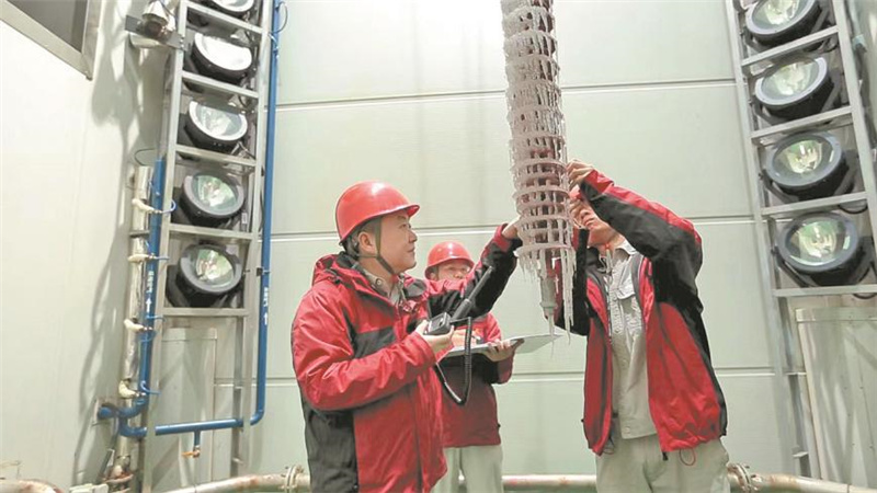 國網(wǎng)湖南電力員工在電網(wǎng)防災(zāi)減災(zāi)全國重點實驗室開展抗冰技術(shù)實驗。