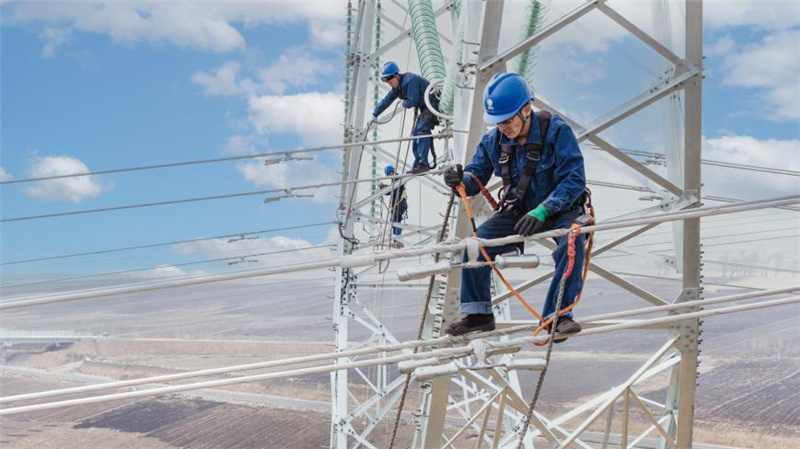 10月31日,在山東省臨沂市溫水鎮(zhèn),國網(wǎng)臨沂供電公司在220千伏蒙溫線開展防舞動間隔棒安裝工作。兩位高空作業(yè)人員默契配合,將間隔棒快速安裝在220千伏蒙溫線B相和C相之間。該公司結(jié)合秋檢工作對剩余44條輸電線路開展抗冰防舞動改造,做好35條穿越林區(qū)輸配電線路巡視消缺,按期投產(chǎn)18項電網(wǎng)補強工程,從源頭提升電網(wǎng)抵御自然災(zāi)害能力,夯實電網(wǎng)保供基礎(chǔ)。