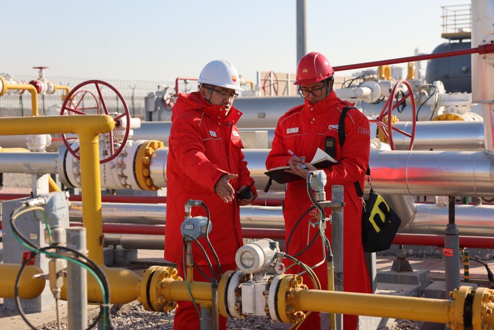 1月16日,在大港油田儲(chǔ)氣庫(kù)群旗下的板808/828儲(chǔ)氣庫(kù),崗位員工在注采井場(chǎng)計(jì)量裝置區(qū)對(duì)壓力表進(jìn)行檢測(cè),保障生產(chǎn)安全。(大港油田供圖)